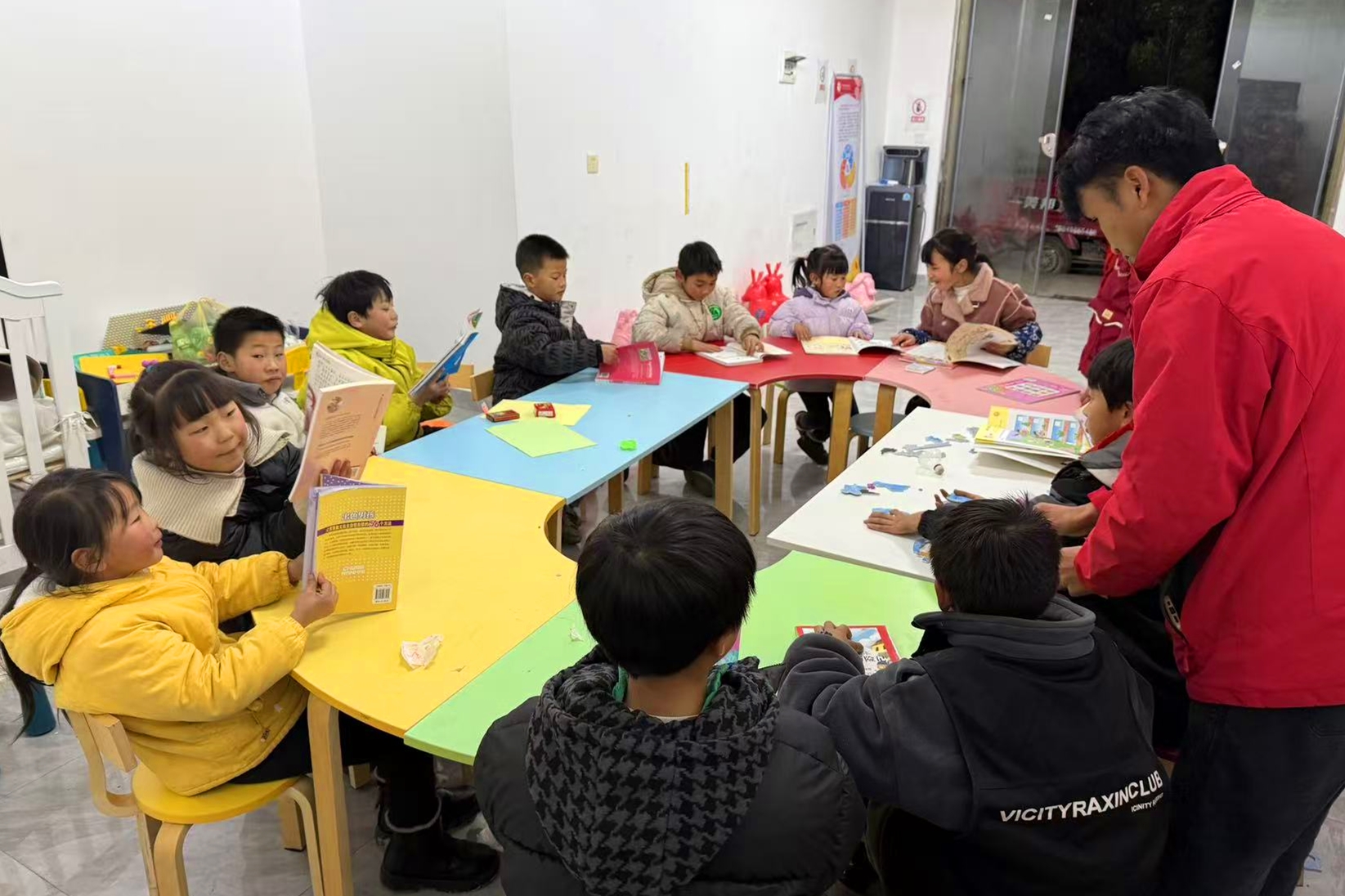 活动伊始,原本安静的书屋因孩子们的到来渐渐热闹起来,大家穿梭于书架间,认真挑选感兴趣的书籍,很快便沉浸在阅读的世界里。现场既有独自静读、神情专注的身影,也有三五成群围坐一起、低声探讨书中情节的小团体,不少孩子还捧着科普绘本,细细探索自然奥秘,翻书声与轻声讨论声交织成温馨的阅读乐章。