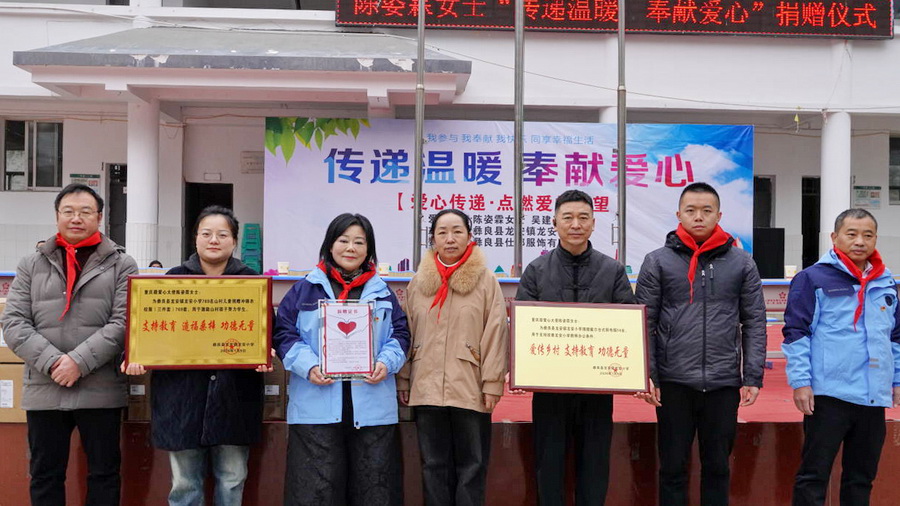 冬日暖阳沐校园,爱心善举暖人心。1月9日,重庆籍爱心人士陈姿霖女士一行走进龙安小学,开展“传递温暖,奉献爱心”主题捐赠活动,为山区学子送来769套冲锋衣校服和14台惠普台式电脑,总价值达187404元的爱心物资,以实际行动诠释公益精神,助力乡村教育事业发展。