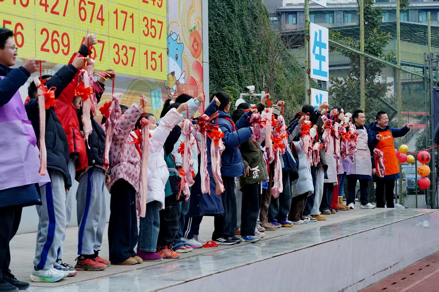 1月9日,彝良天立学校操场红灯高悬、彩带飘扬,云南民间小调婉转悠扬,700余名师生与家长代表齐聚一堂,以“寻味乡情·共迎新春——传承民俗文化,共建家校温情”为主题的杀猪饭活动温情开锣。