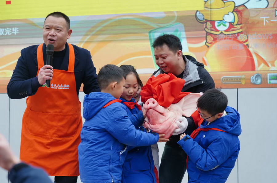 活动紧扣文化传承初心,开场便通过锣鼓助兴、生猪绕场互动,搭配主持人讲解杀猪饭民俗渊源,让孩子们直观感受云南乡土饮食文化的独特魅力。