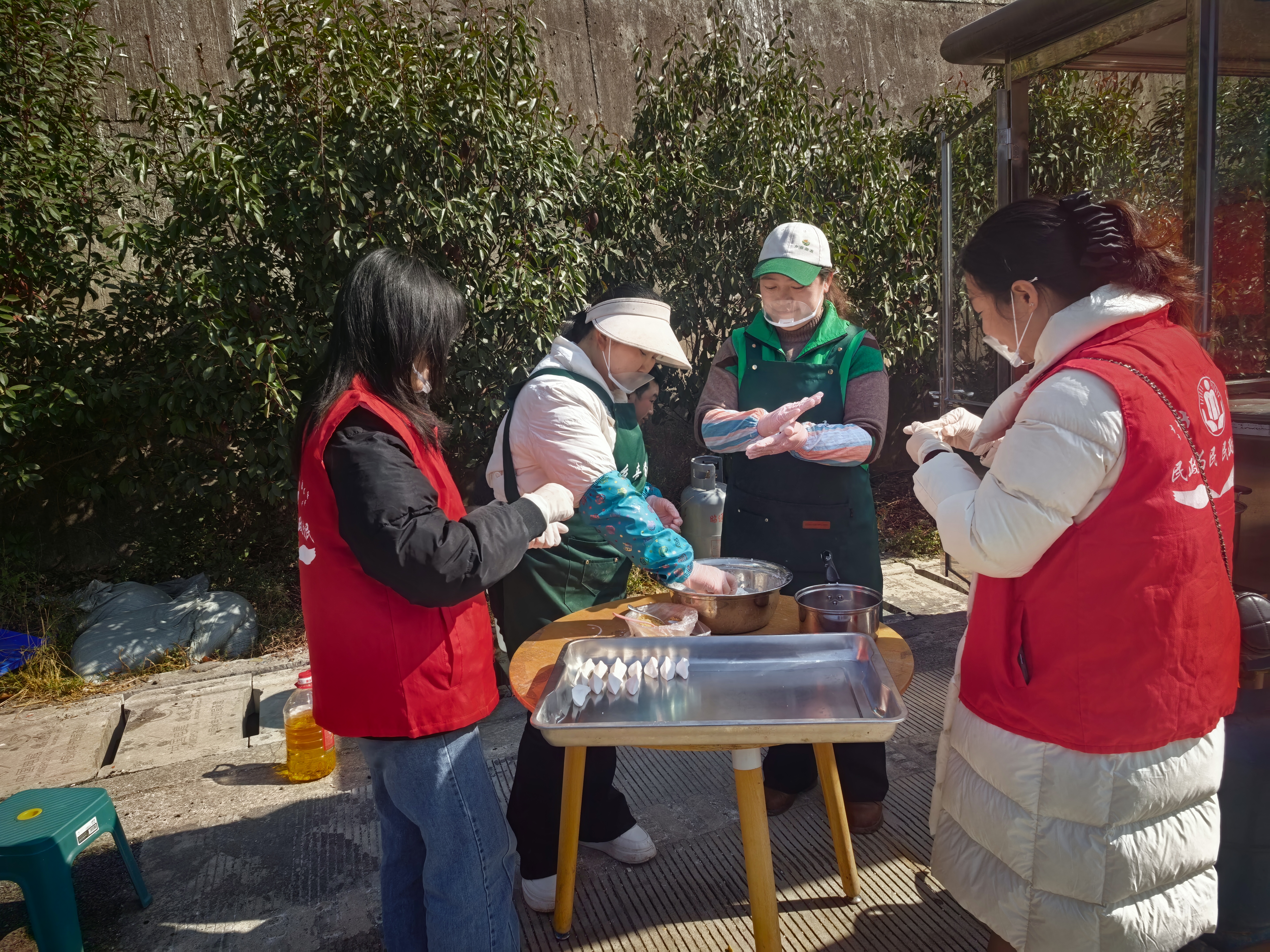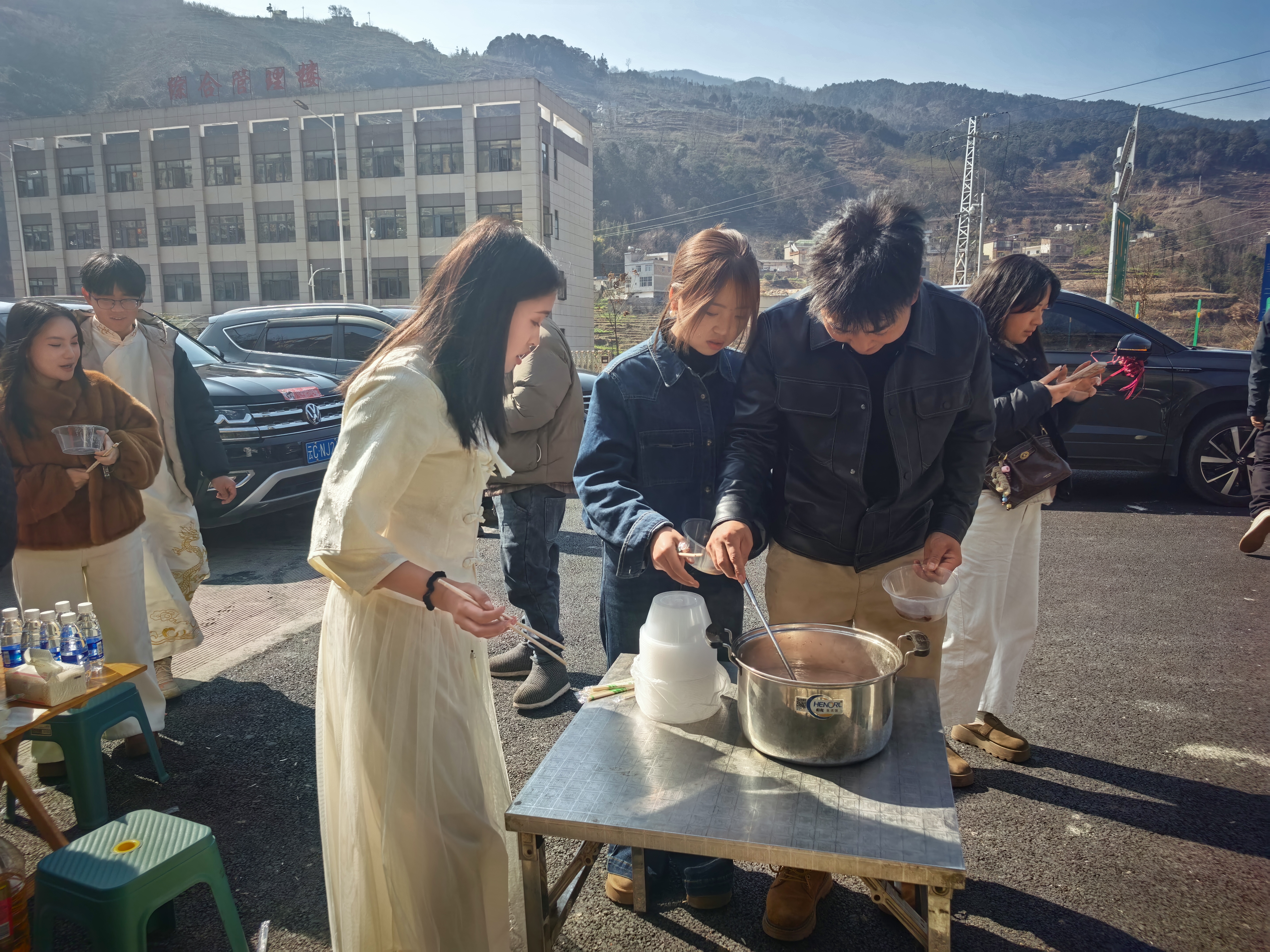 活动现场,工作人员与志愿者忙碌不停,现煮的汤圆香气四溢。这里的汤圆形似饺子,是海子镇特有的家乡味道,承载着无数游子的儿时记忆。除特色汤圆外,现场还准备了烙锅洋芋等地道小吃,让返乡乡亲刚踏故土,就尝到熟悉的年味。