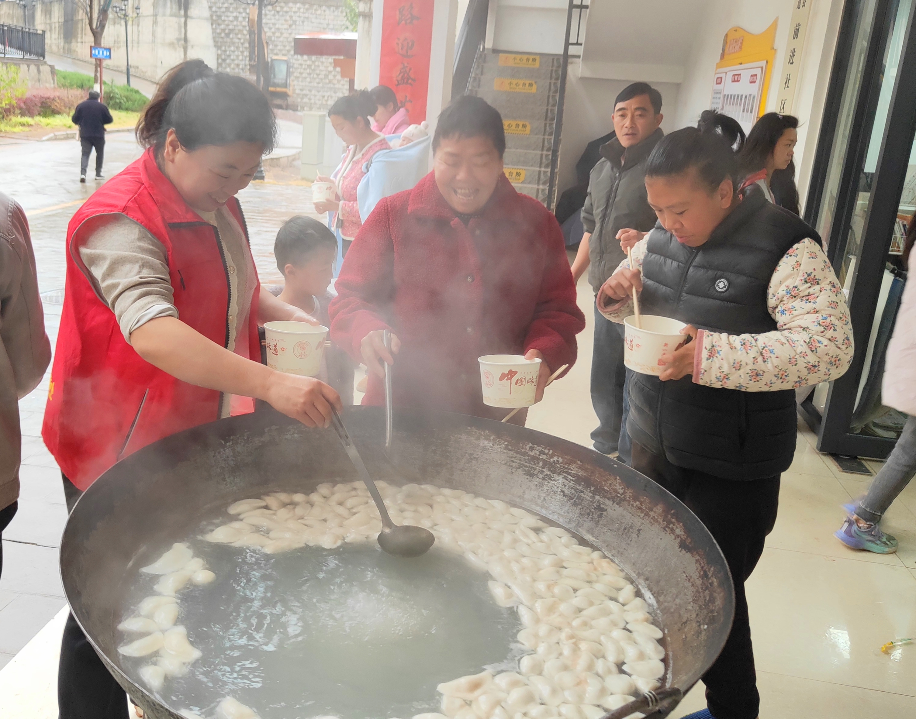 汤圆煮熟后,香气四溢,志愿者将热气腾腾的汤圆逐一送到现场居民手中,同时特意走访辖区独居、空巢老人,为他们送去汤圆和节日问候,让老人们在团圆佳节感受到社区的牵挂与温暖。