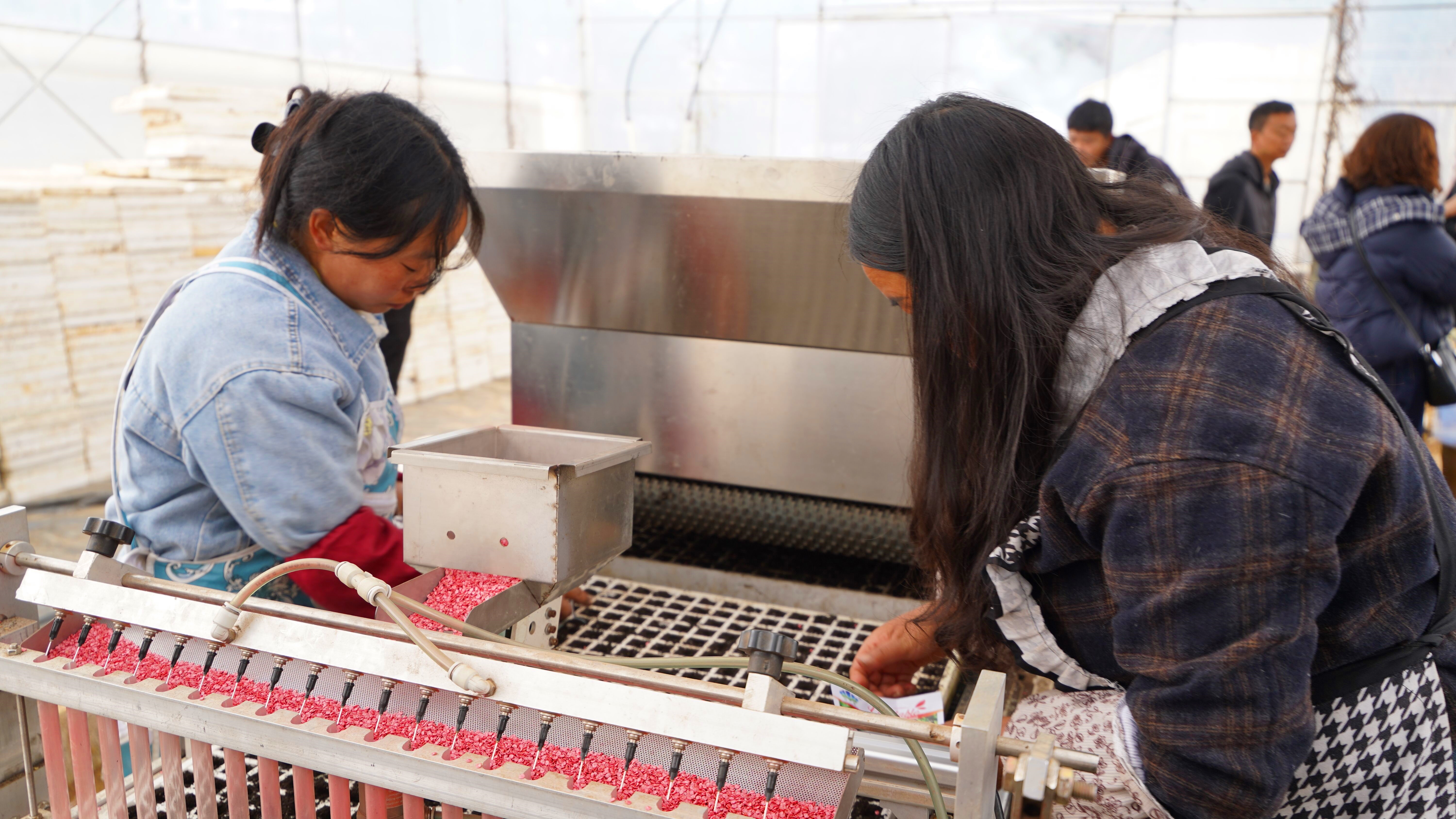 产业的红火,不仅带动了辣椒种植提质增效,更为周边群众搭建了家门口的就业平台,实现顾家与挣钱“两不误”。“在这里干活离家近,一天能挣130元,还能照看家里老人和孩子,比外出打工方便多了。”正在摆放漂盘的工人蔚林蓝擦了擦额头的汗水,脸上洋溢着幸福的笑容。据了解,该育苗基地用工高峰期每天需20余名工人,全部来自元宝村及周边村寨,让群众在参与育苗管护的过程中实现就近就业、增收致富,切实分享产业发展带来的红利。