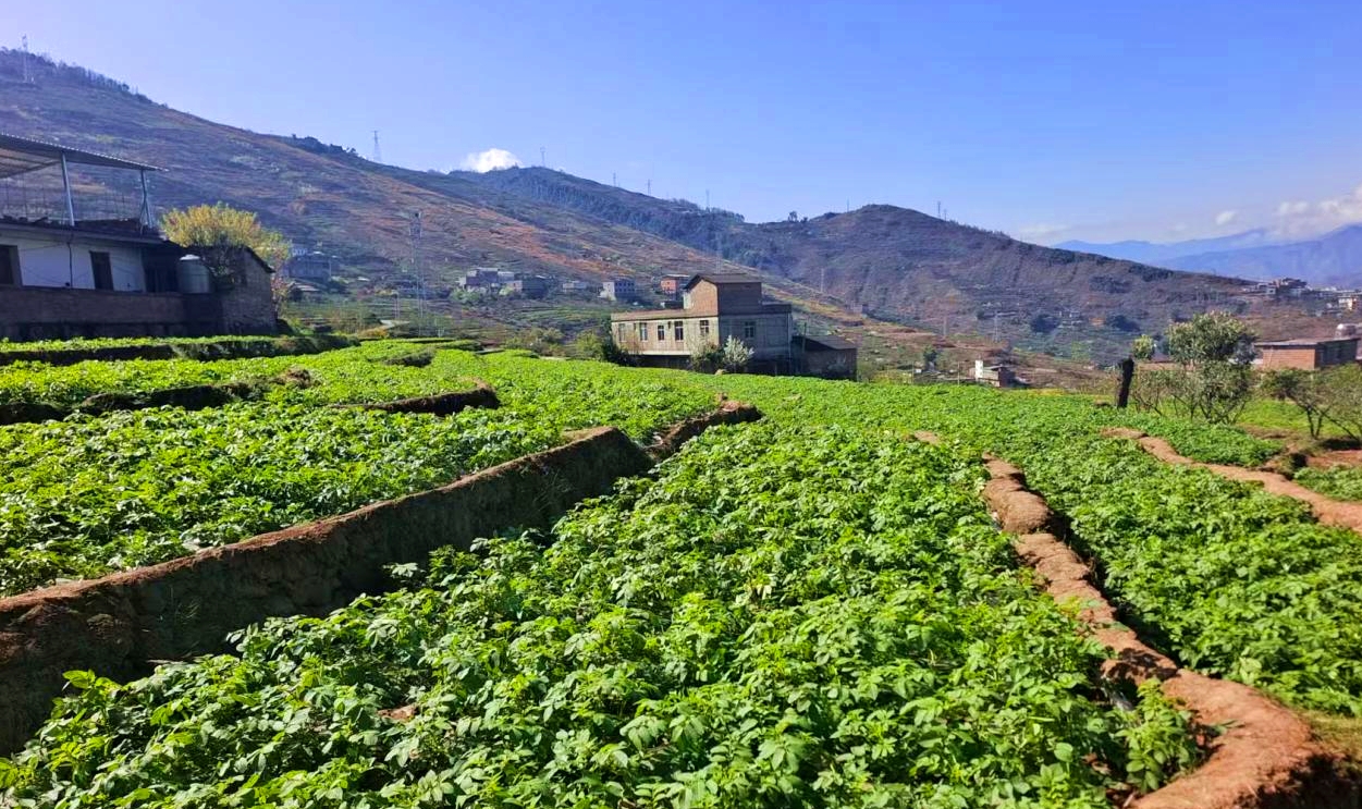 马窑村立足气候与土地优势,因地制宜发展冬季洋芋特色种植,今年种植面积达600亩。在科学田间管护下,洋芋植株长势稳健,预计亩产可达800公斤,约一个月后将陆续成熟上市,为当地村民带来稳定经济收益。