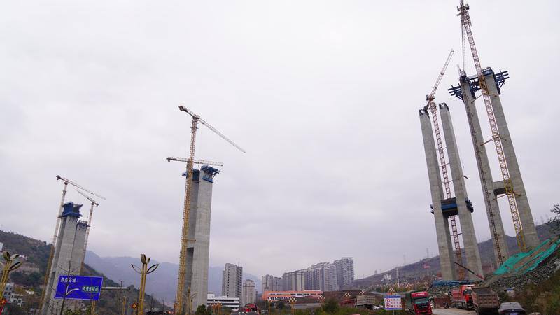 近日,在昭通市彝良县麻彝(麻枊湾至彝良县城段)高速红石岩特大桥施工现场,工人正抓紧施工。