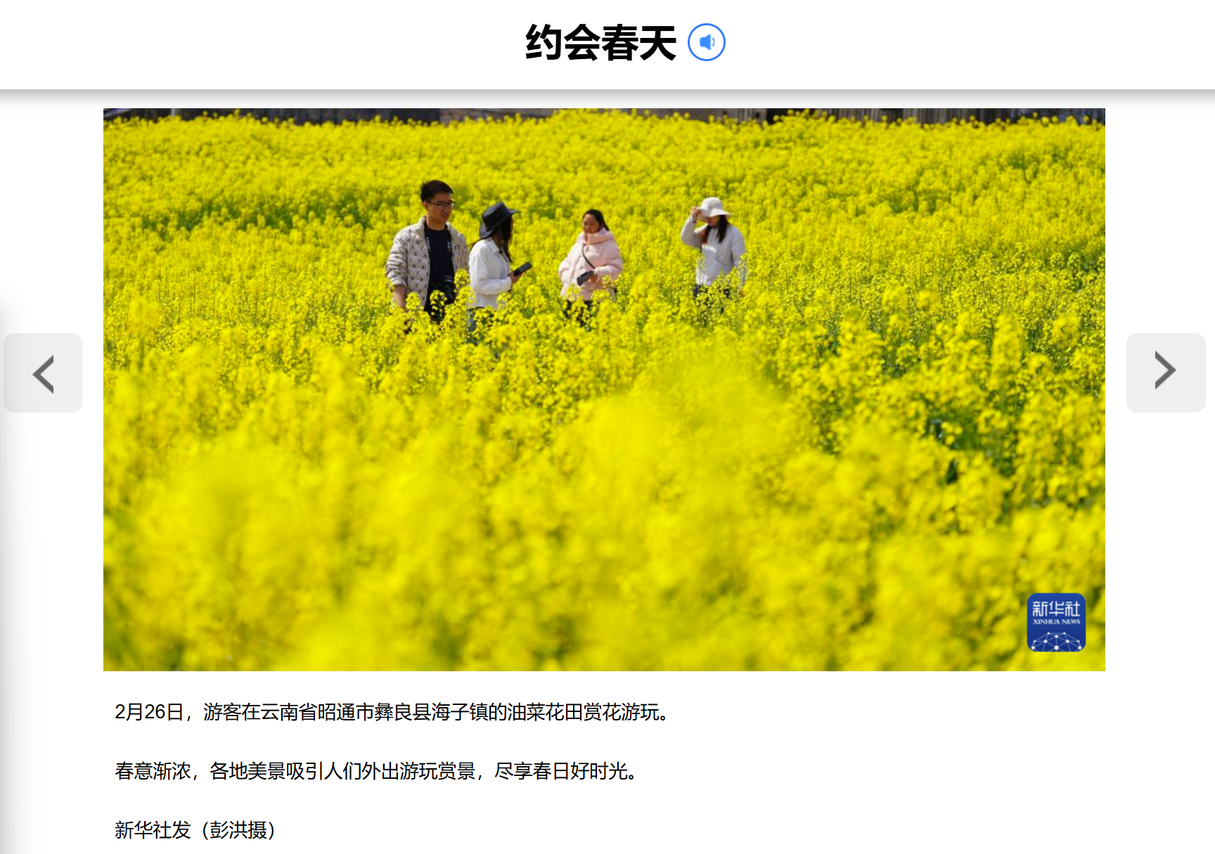 2月26日,游客在云南省昭通市彝良县海子镇的油菜花田赏花游玩。