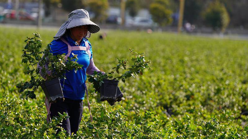 2月27日,在昭通市彝良县角奎街道的一处蓝莓种植基地里,果农正抢抓农时进行除草、修剪、水肥管理等作业。彭洪 摄