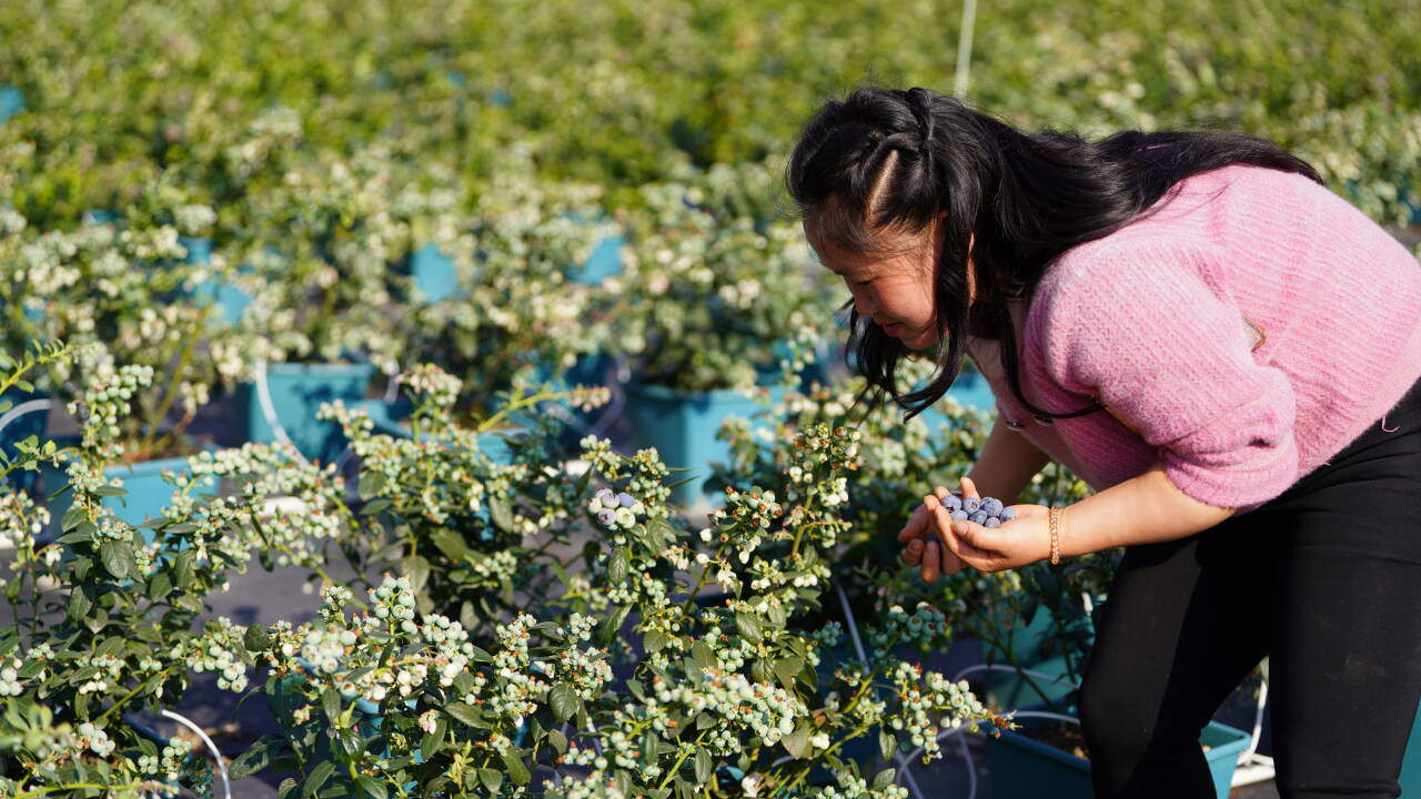 市民采摘盆栽蓝莓