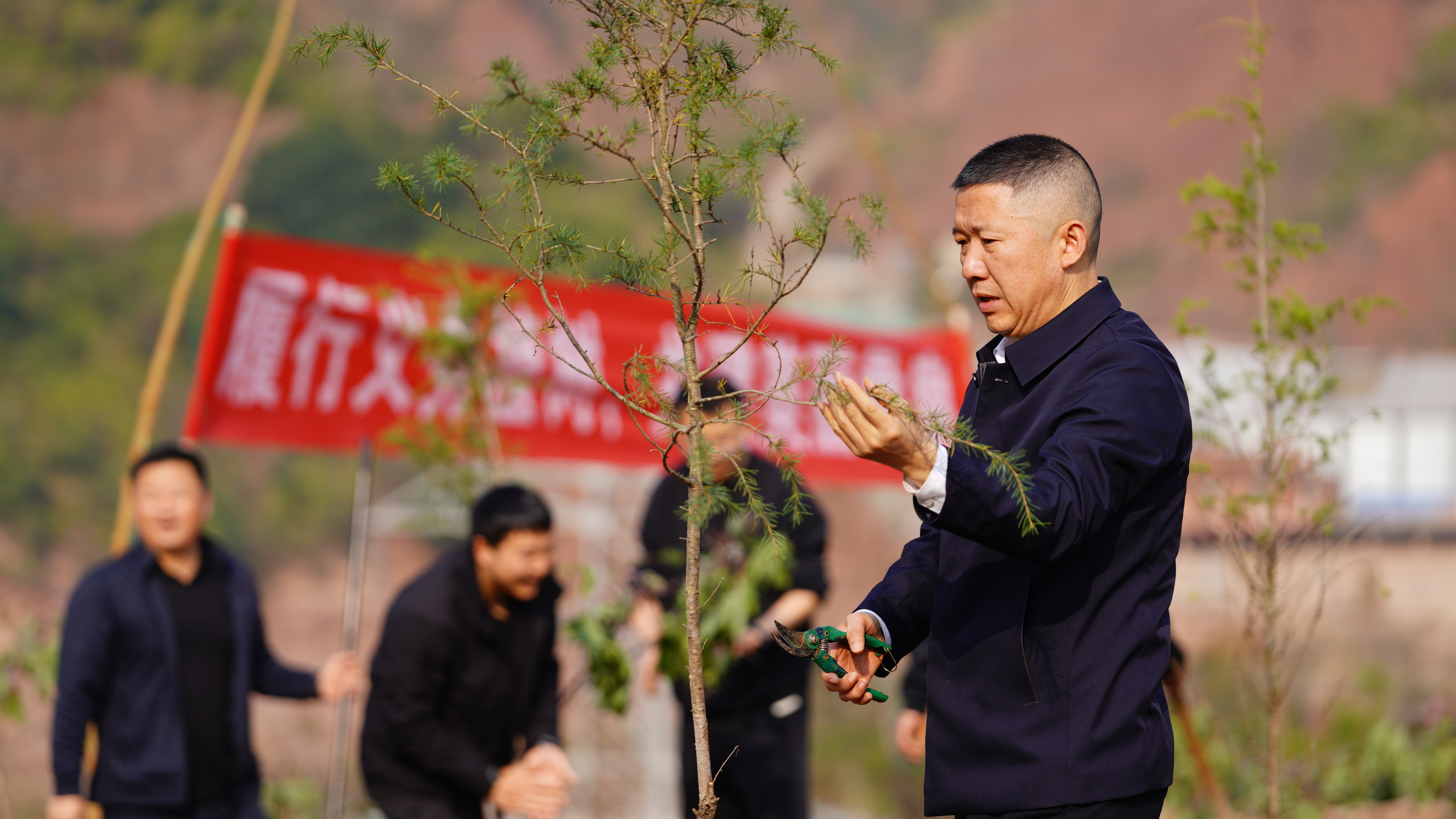 植树现场一派热火朝天,大家三五人一组、分工协作,挥锹铲土、扶苗培土、提水浇灌……忙碌的身影与盎然绿意交相辉映,勾勒出春日里生机盎然的劳动画卷。经过大家的共同努力,约150余株雪松被整齐栽下,迎风挺立、错落有致,为初春大地增添勃勃生机。