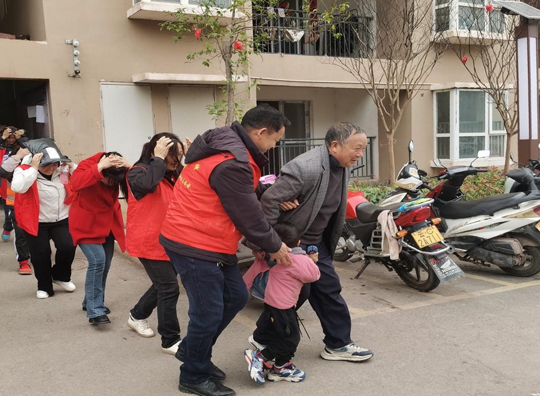 演练模拟地震突发场景,随着警报响起,居民们在志愿者引导下,双手抱头、弯腰低姿,快速有序地从楼栋撤离至户外安全区域,整个过程紧张有序、衔接顺畅,切实检验了应急疏散流程的有效性。随后,工作人员现场讲解了地震、火灾等灾害的避险要点,示范了正确的防护姿势与逃生技巧,让居民在实战中掌握实用的自救方法,有效提升了面对突发灾害时的应急反应能力。