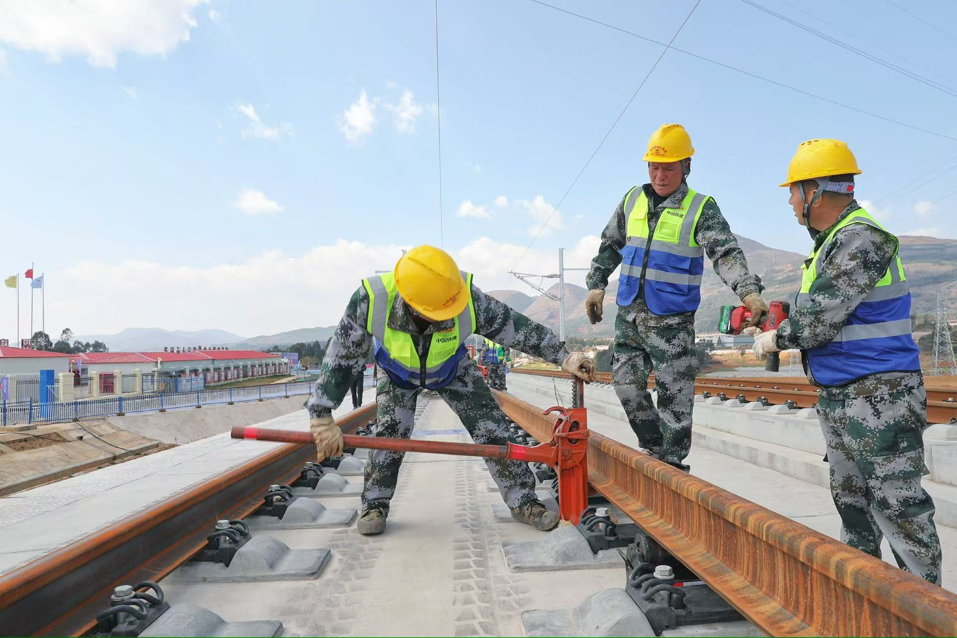 “渝昆高铁集复杂地质、长大隧道群等特点于一体,我们针对性研发应用了长大坡道铺轨、制动与精调成套技术,并配备先进工装设备与智能监测系统,确保铺轨安全和精度。”中铁十六局渝昆高铁铺轨施工技术负责人张延说。