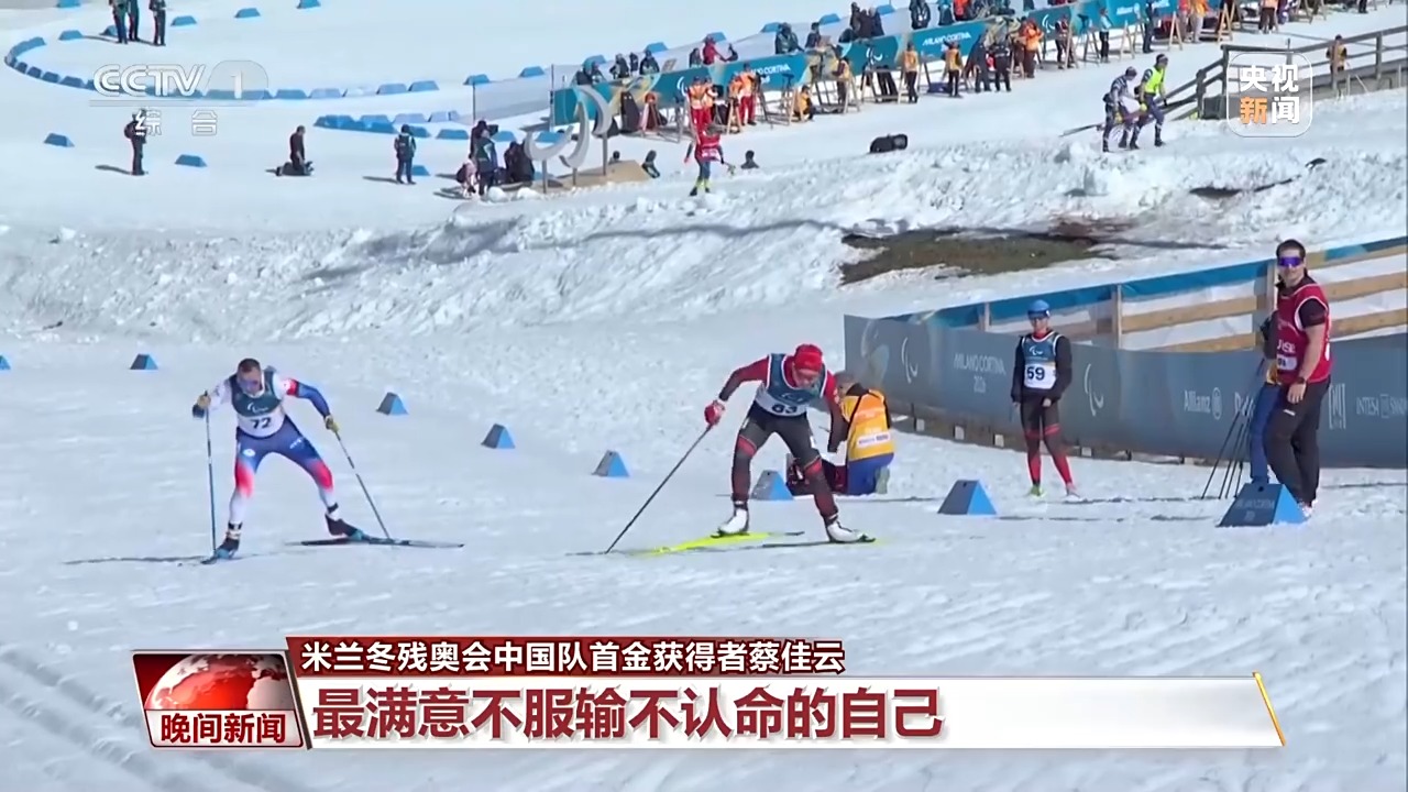 本届冬残奥会开幕后的首个比赛日,中国体育代表团获得2金2银2铜,迎来开门红。在泰塞罗越野滑雪体育场,中国选手蔡佳云在残奥冬季两项男子7.5公里站姿组比赛中夺得冠军,这也是中国体育代表团在本届赛会的首枚金牌。赛后,总台记者对他进行了采访,他说,最满意不服输不认命的自己在赛场上拼搏。