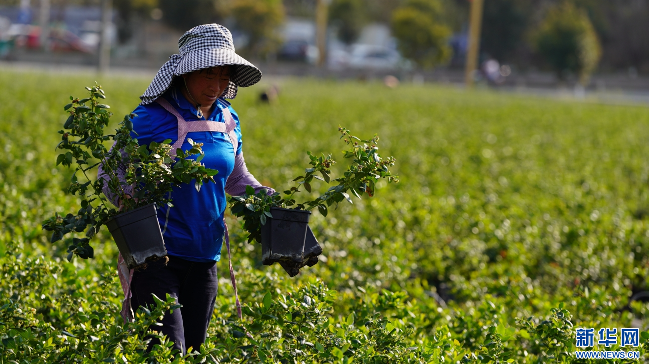 2月27日,在云南省昭通市彝良县一蓝莓种植基地,果农正抢抓农时进行作业。新华网发(彭洪 摄