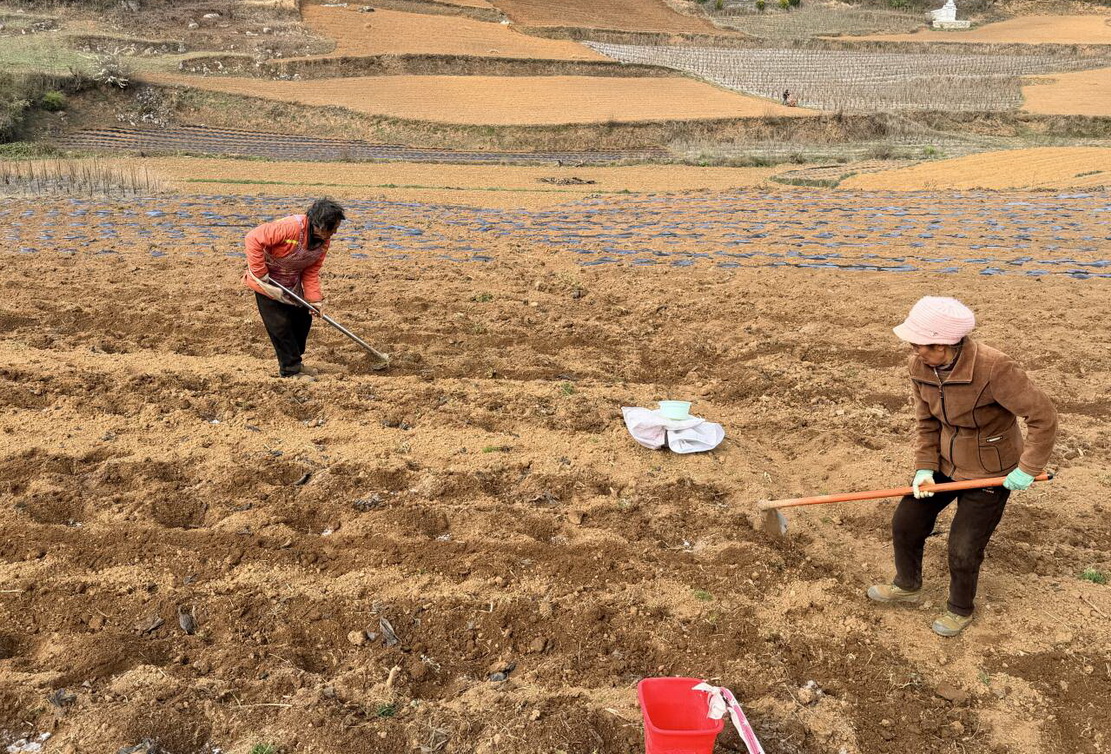 劳作间隙,农户围坐在一起拉家常、话增收,爽朗的笑声在山谷间久久回荡,满是劳作的充实与田园的温情。“在政府的技术指导和政策帮扶下,我们学到了科学规范的种植技能,种植水平明显提高,对今年粮食增产、家庭增收也更有信心了。”村民潘正琴一边点种一边笑着说。此外,不少外出务工青年特意提前返乡,利用返岗前的时间协助家人完成春耕播种,既减轻了家中老人的劳作负担,也为春耕生产注入了新生力量。