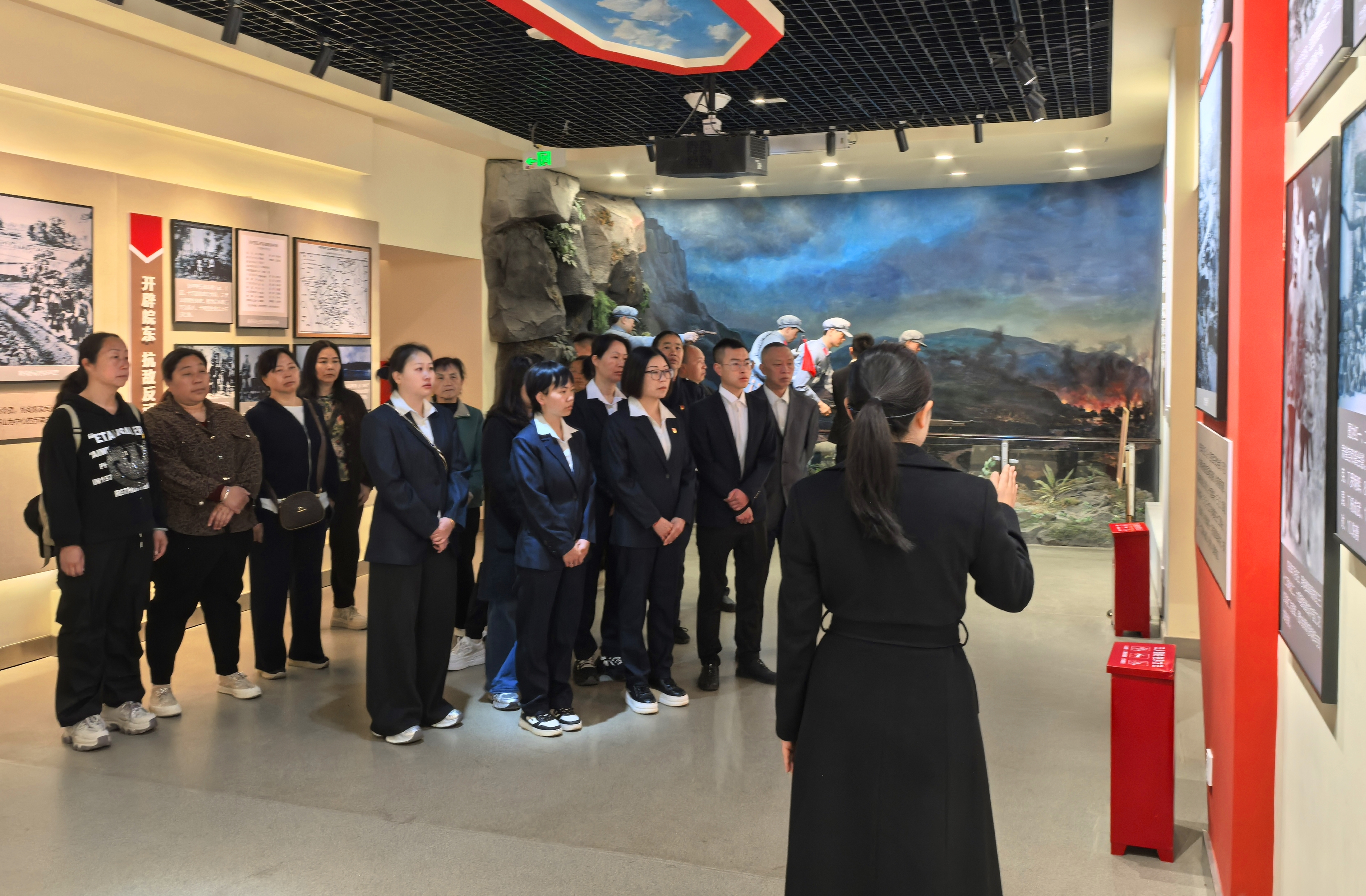 在创业山烈士陵园,全体人员整齐列队、肃立默哀,以鞠躬致敬的方式,向长眠于此的英烈表达无尽哀思与崇高敬意。默哀仪式后,大家缓步拾级,依次为革命先辈敬献鲜花。在罗炳辉纪念馆参观学习中,大家在一张张珍贵的老照片、一件件承载岁月痕迹的革命实物前,认真聆听罗炳辉将军的英勇事迹。