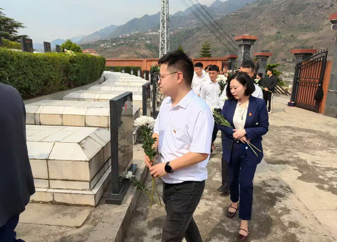 活动现场庄严肃穆,大家肃立默哀,向英勇献身的革命先烈致以崇高敬意与深切哀思。默哀仪式后,大家缓步绕行瞻仰烈士墓群,依次为革命先辈敬献鲜花,庄严肃穆的氛围中接受红色革命精神的洗礼,感悟英烈精神、砥砺初心使命。