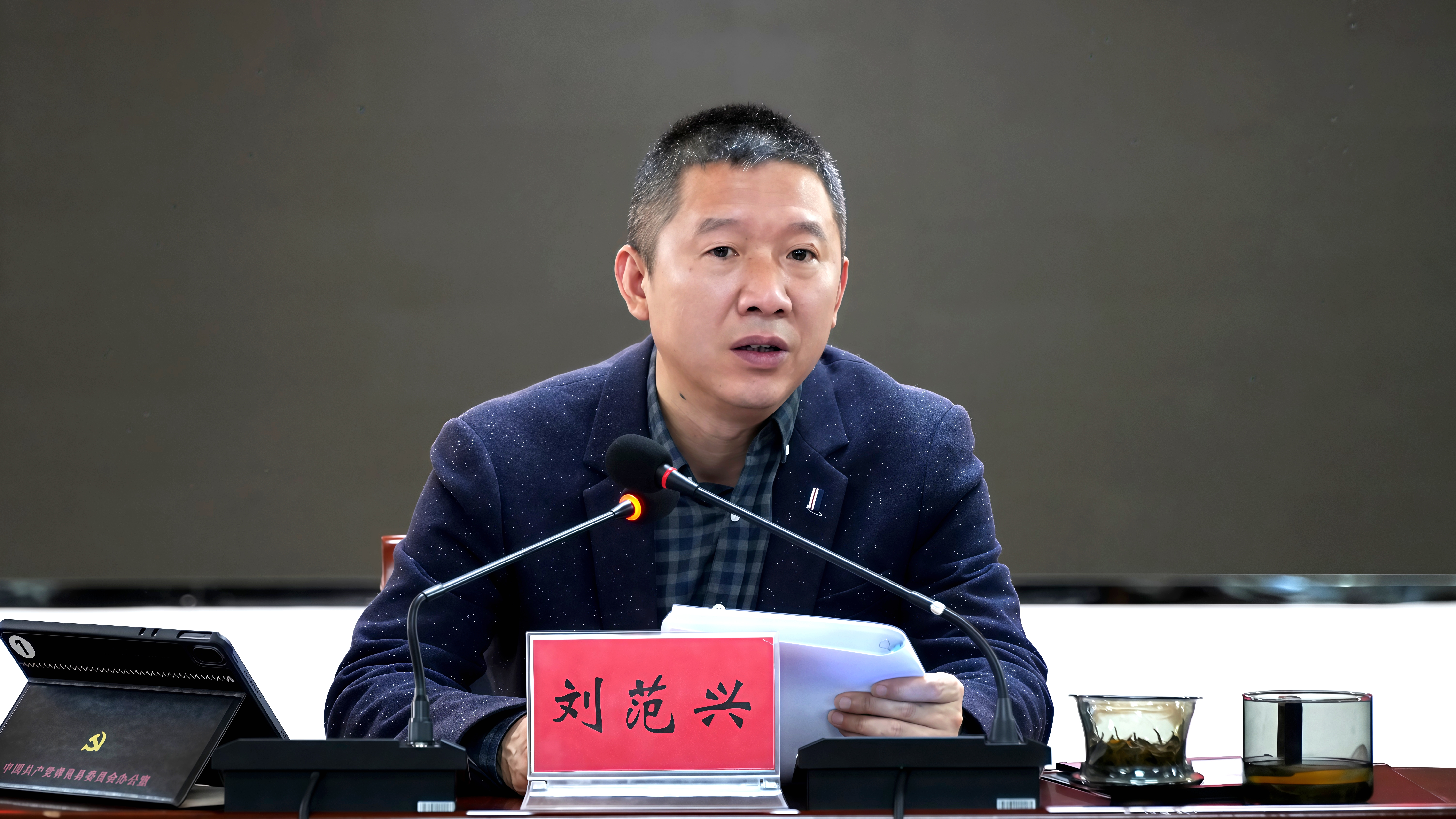 县委书记刘范兴主持并讲话。县委副书记、县长陈霖作工作安排。县委副书记刘明波,县人大常委会主任高正坤等四家班子领导出席会议。