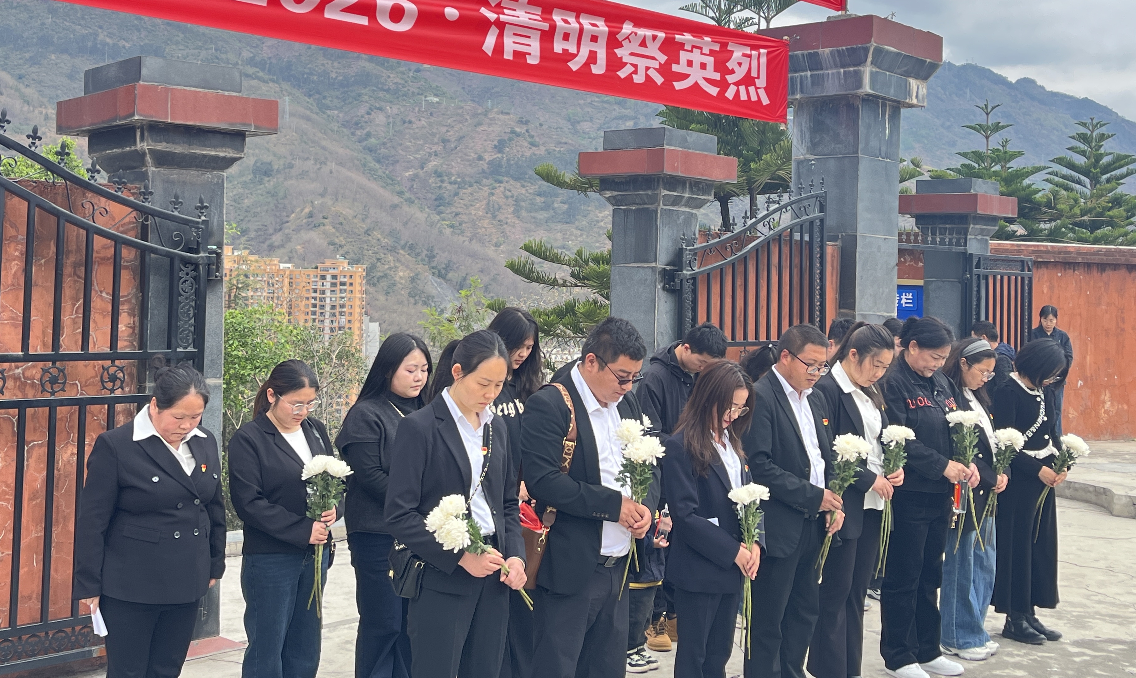 活动当天,创业山烈士陵园内松柏苍翠、庄严肃穆。全体人员肃立默哀,瞻仰烈士墓,敬献鲜花,向革命先烈表达深切哀思与崇高敬意,深切缅怀先烈们为民族解放、人民幸福挺身而出、英勇献身的峥嵘岁月和不朽功绩。