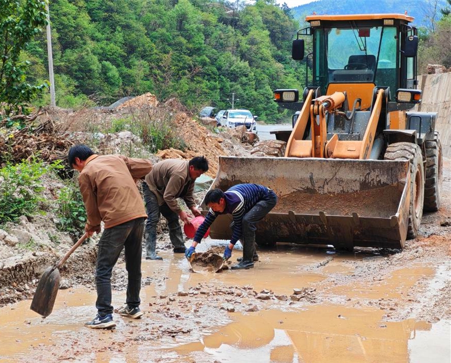 抢修现场一派热火朝天的景象,党员干部与群众分工明确、默契协作。有的操作铲车清理路面大型石块和堆积淤泥,有的驾驶拖拉机转运废料,有的手持铁锹、扫帚清理路面残留杂物、疏通排水沟渠。大家不畏泥泞、不惧劳累,干劲十足、合力攻坚,重点破解道路“堵点”“难点”,全力清除安全隐患,切实解决群众急难愁盼问题。