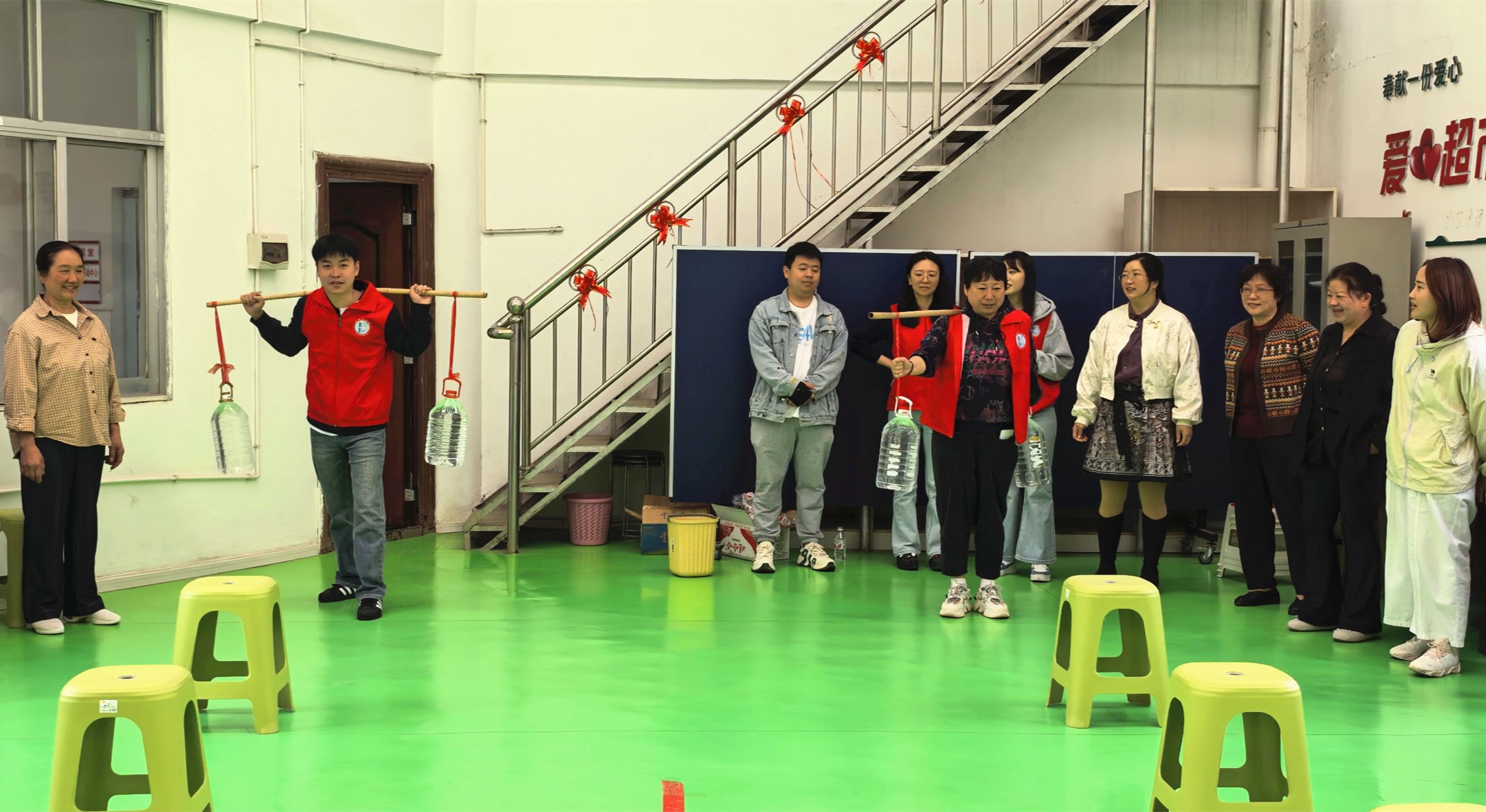 活动现场精心设置了倒走插秧模拟、趣味挑水、掰玉米入筐三项互动体验项目。活动中,大家分工协作、默契配合:在倒走插秧模拟区,大家认真规范地摆放仿真秧苗,细细体会农耕劳作的细致与严谨;在趣味挑水环节,大家肩挑水桶稳步前行,在欢声笑语中比拼平衡能力与耐力;在掰玉米入筐区,大家手疾眼快,将仿真玉米穗迅速掰下、精准投入筐中,现场氛围热烈融洽,处处洋溢着欢声笑语。