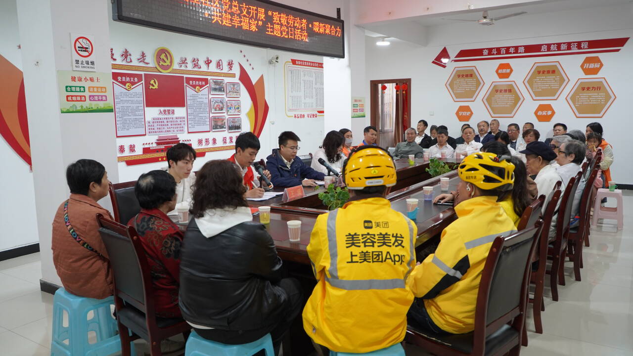 活动中,全体党员重温入党誓词,主持人领学习近平总书记关于劳动精神、新业态新就业群体党建工作的重要论述,引导大家增强做好基层服务的思想自觉。